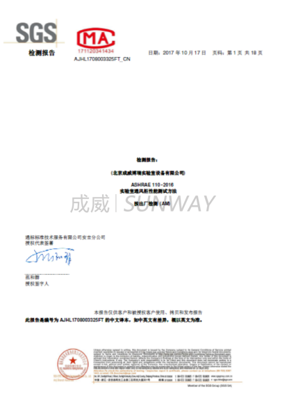 2017年10月17日,跟隨國(guó)際高標(biāo)準(zhǔn)的升級(jí),成威公司拿到了通風(fēng)柜新的檢測(cè)標(biāo)準(zhǔn)ASHIE 110(2016)版檢測(cè)報(bào)告。