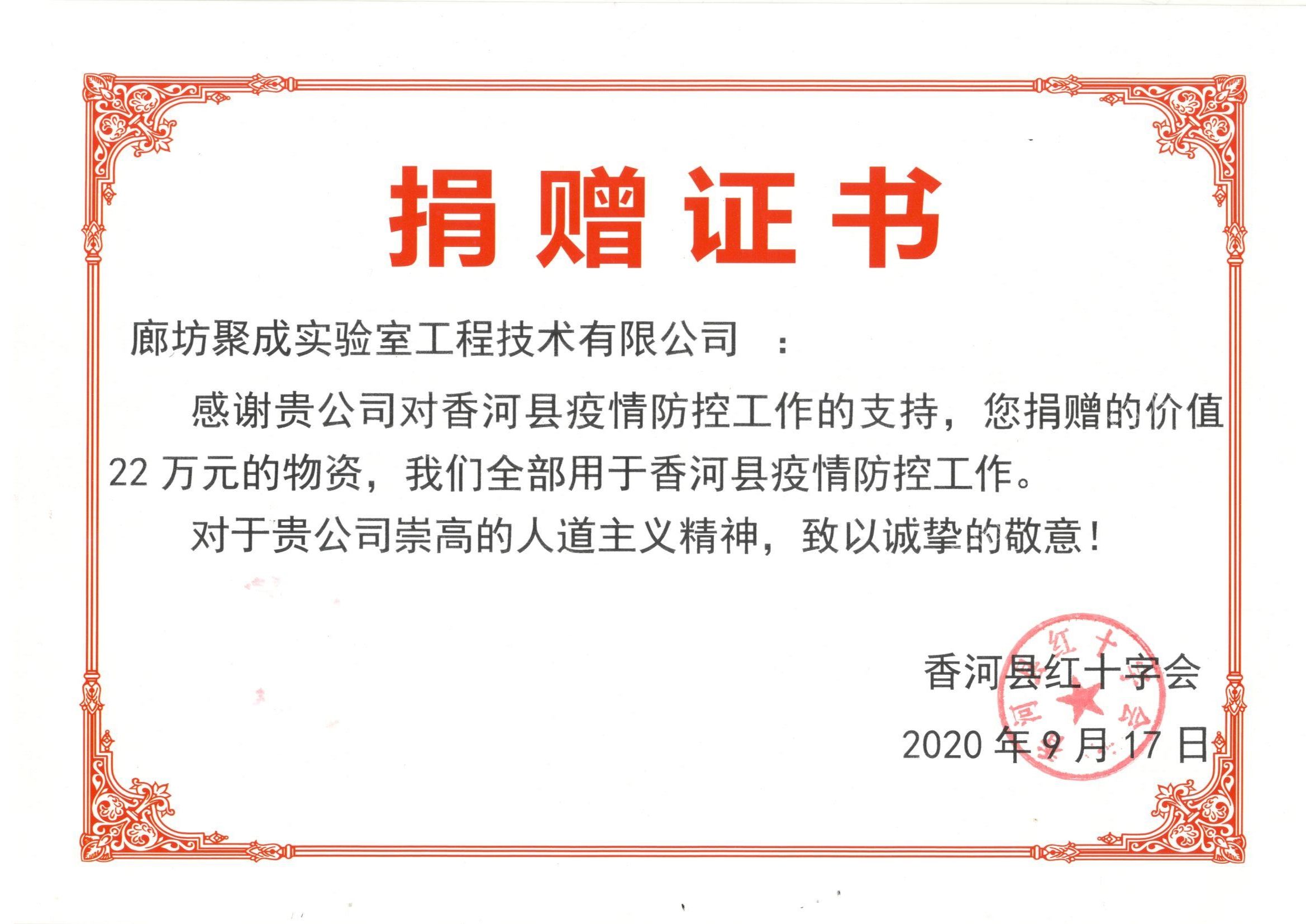 北京成威于2020年9月17日捐贈(zèng)價(jià)值22萬元的正壓核酸采樣站為支持