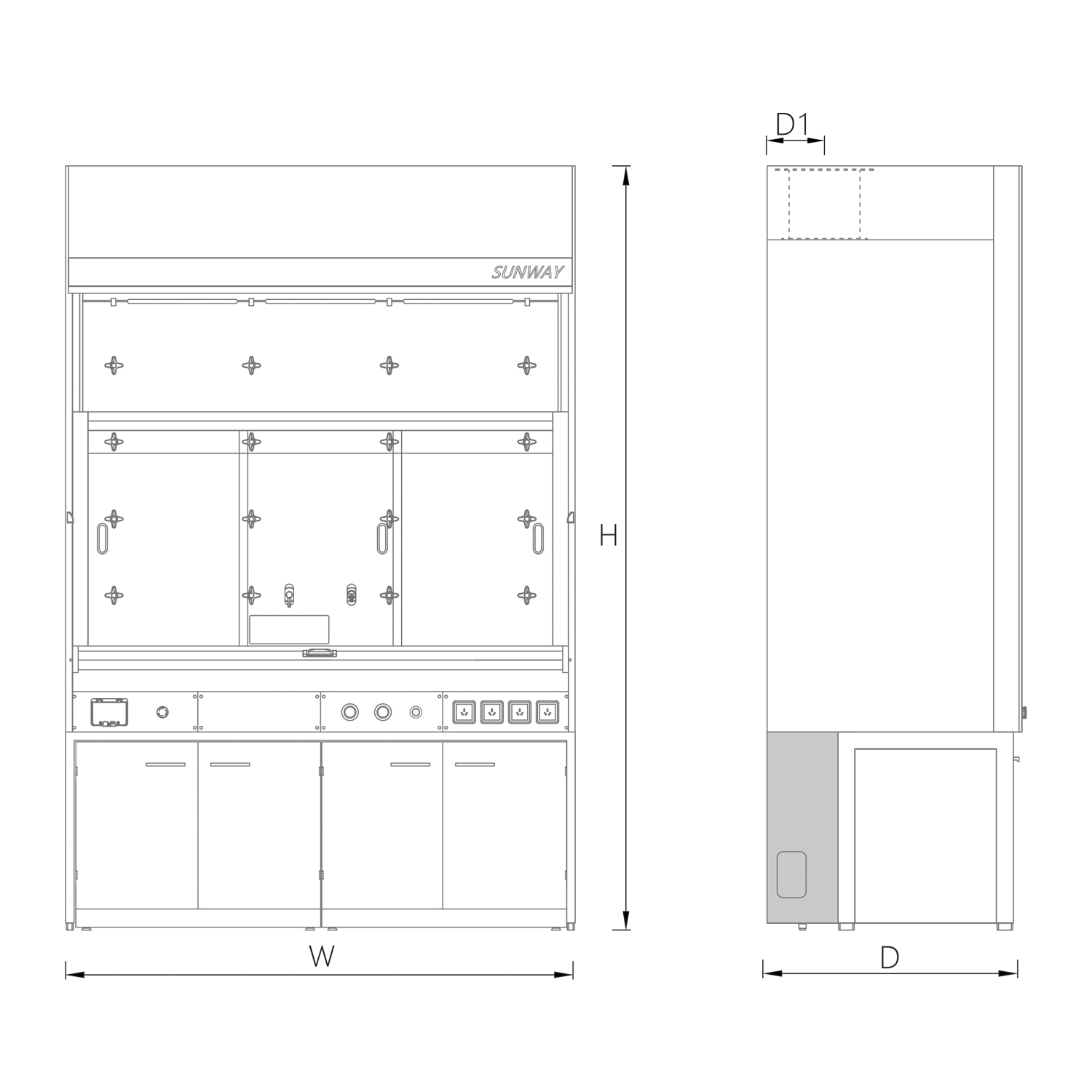 標(biāo)配雙門柜/選配功能下柜:防火安全柜、垃圾柜、廢液柜 |